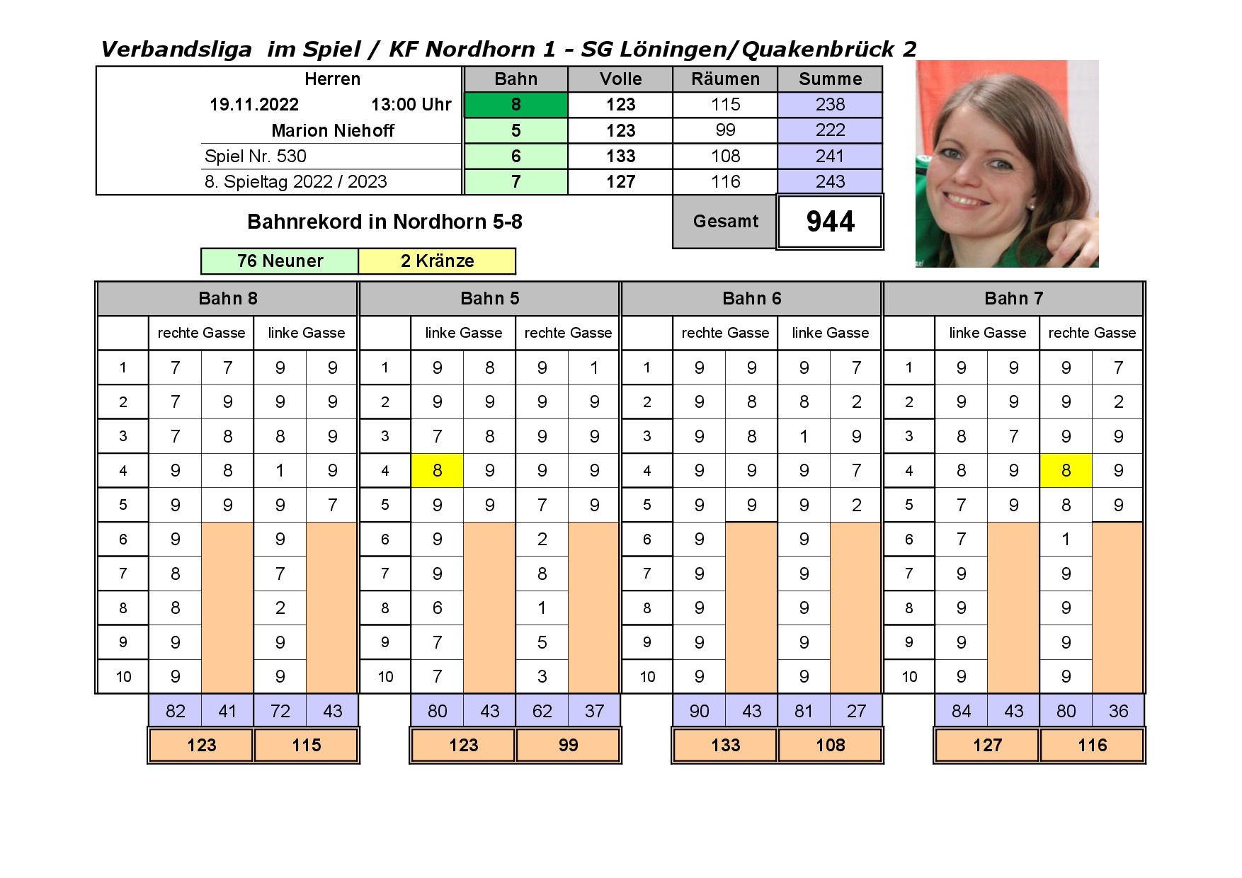 Deutscher U 24/U 18 Rekord mit Einzelnen Zahlen und Gassen